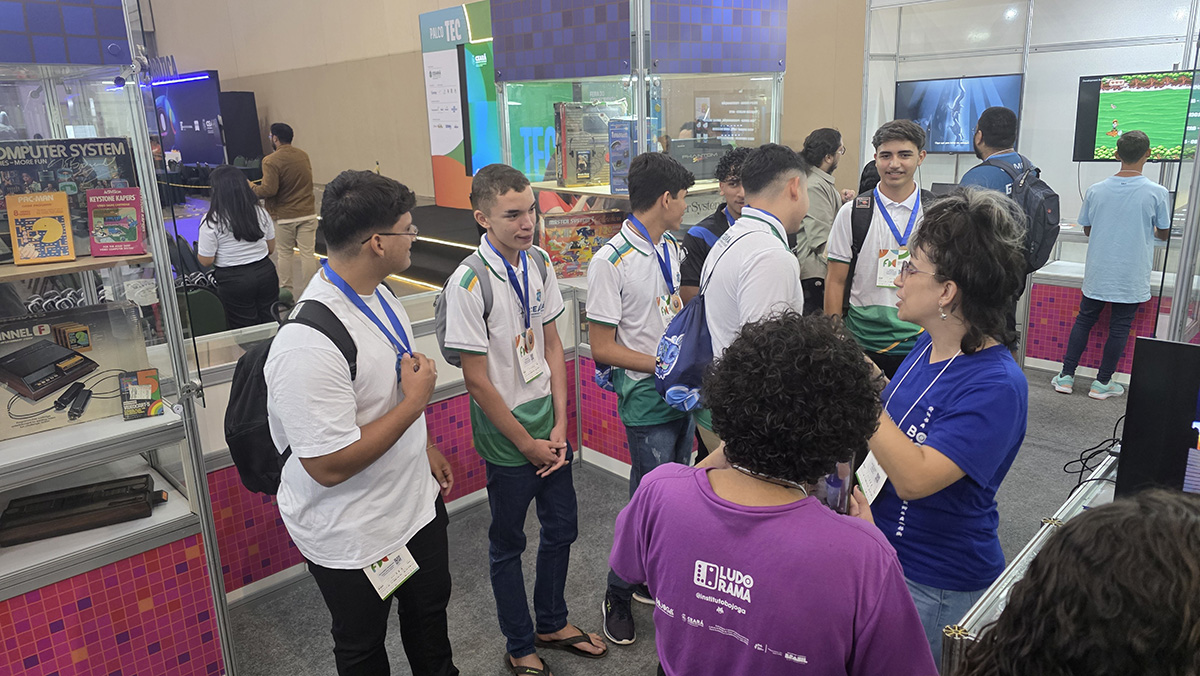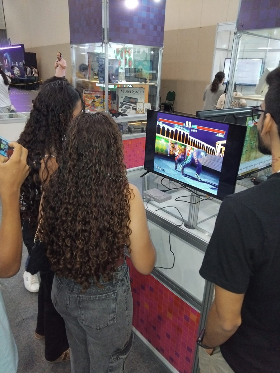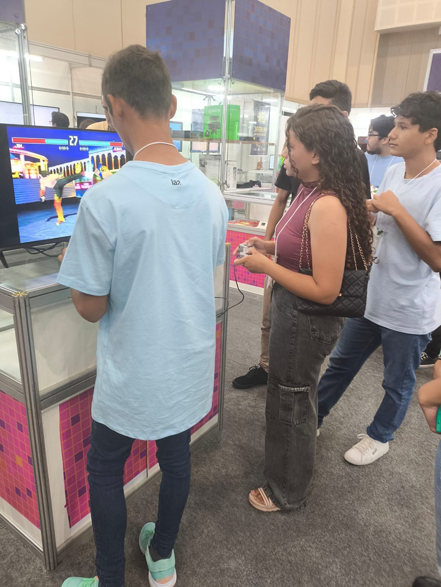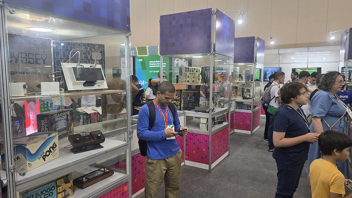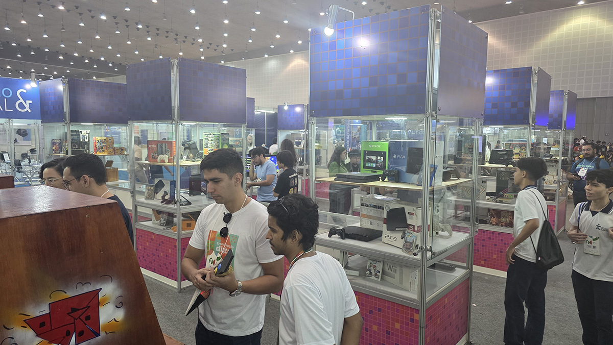 A presença do Instituto na Feira também reforçou a importância de ocupar espaços estratégicos de difusão do conhecimento, ampliando o debate sobre jogos para além do entretenimento, como ferramentas de educação, cultura e inovação social. Mais uma vez, o Museu foi uma atração especial e inédita dentro do setor público, levando muitos curiosos a viver os jogos do passado, experimentando as tecnologias dos anos 70, 80, 90 e anos 2000.