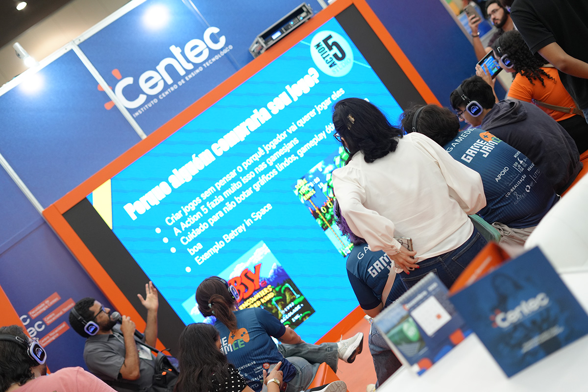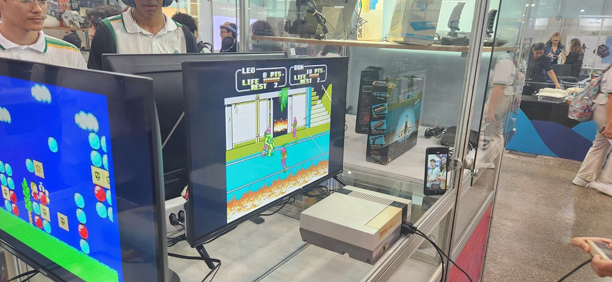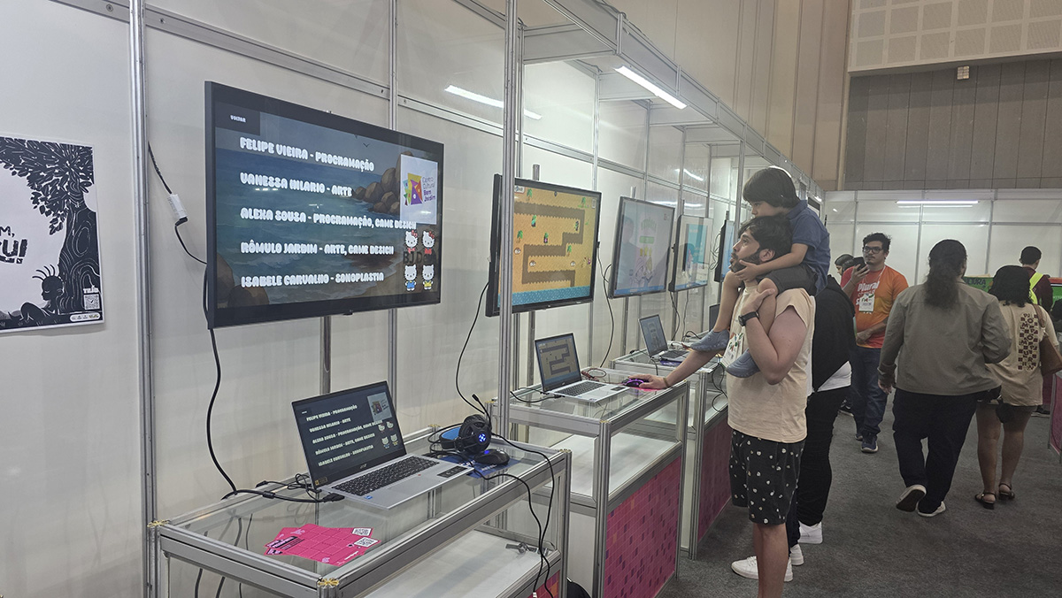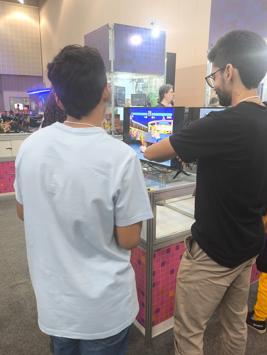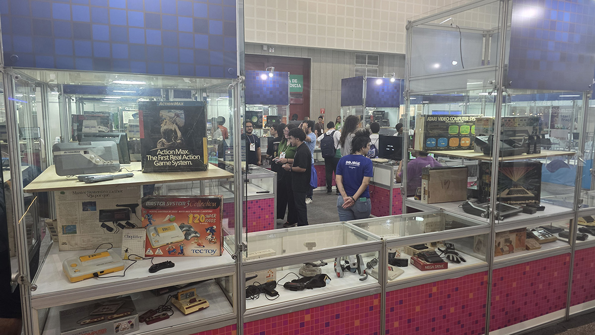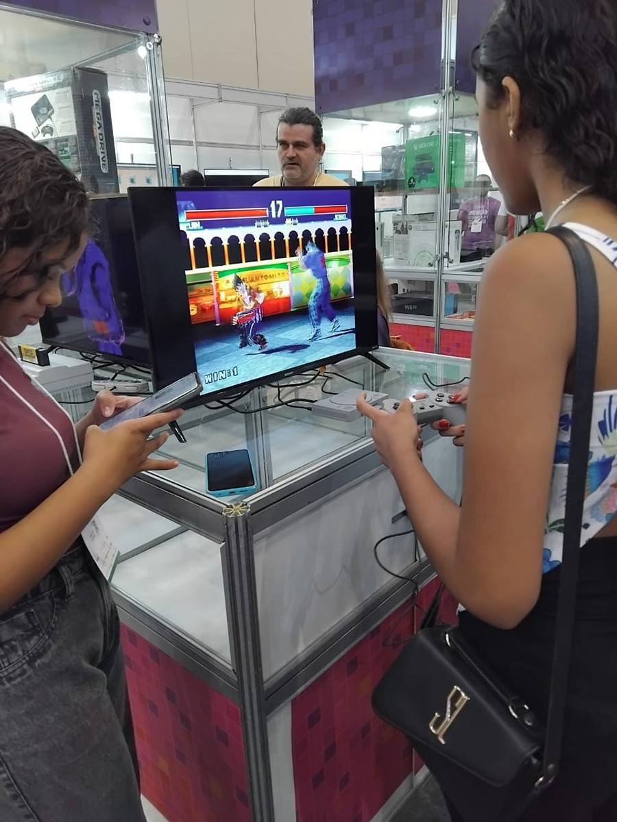 A presença do Instituto na Feira também reforçou a importância de ocupar espaços estratégicos de difusão do conhecimento, ampliando o debate sobre jogos para além do entretenimento, como ferramentas de educação, cultura e inovação social. Mais uma vez, o Museu foi uma atração especial e inédita dentro do setor público, levando muitos curiosos a viver os jogos do passado, experimentando as tecnologias dos anos 70, 80, 90 e anos 2000.